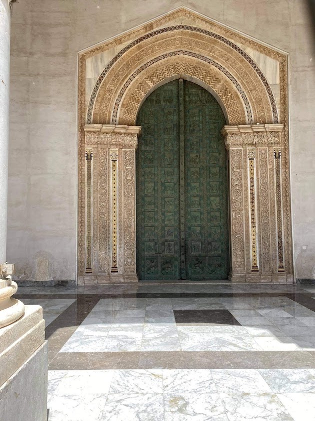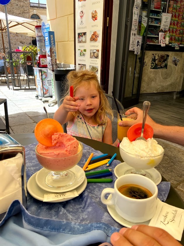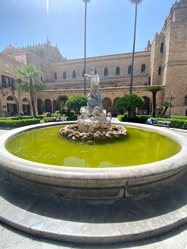 Sama droga z Cefalu do Monreale zajmuje nieco ponad godzinę. Większość trasy pokonujemy autostradą, a następnie krętymi drogami wjeżdżamy do miasteczka. Główną atrakcją jest tu monumentalna katedra z XII w. W naszym przypadku podróż była dość mocnym niewypałem organizacyjnym :D. Mianowicie, dojechaliśmy w okolicach godziny 11, a że było bardzo gorąco a Nasta ujmując to delikatnie nie była w najlepszym natroju po podróży, uznaliśmy że zaczynamy od lodów i granity. Po leniwej konsumpcji udaliśmy się do wejścia do katedry, które właśnie… zamknięto :D. Katedra miała siestę od 12:30 do 14:00.